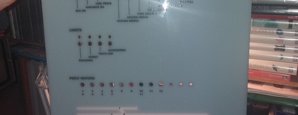 I took some wood and built a frame with two sides, a shelve and a place to fit all the switches. Fitted it under the layout on a slider so I can hide it away if not in use. This worked well for a while. As things progressed it became impossible to manage everything so I decided to dump the panel and design something properly.